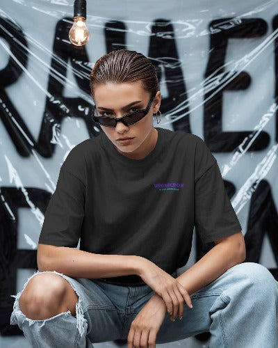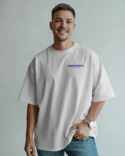 Subtiler Print, starke Präsenz. Mit unserem WRONGCROW Oversized T-Shirt in tiefem Schwarz (auch in strahlendem Weiß erhältlich) definierst du deinen Look neu. Das dezente, lilafarbene "Street Knowledge" Logo auf der Brust ist mehr als nur ein Print – es ist ein exklusives Zeichen deiner Authentizität und deiner urbanen Weisheit.