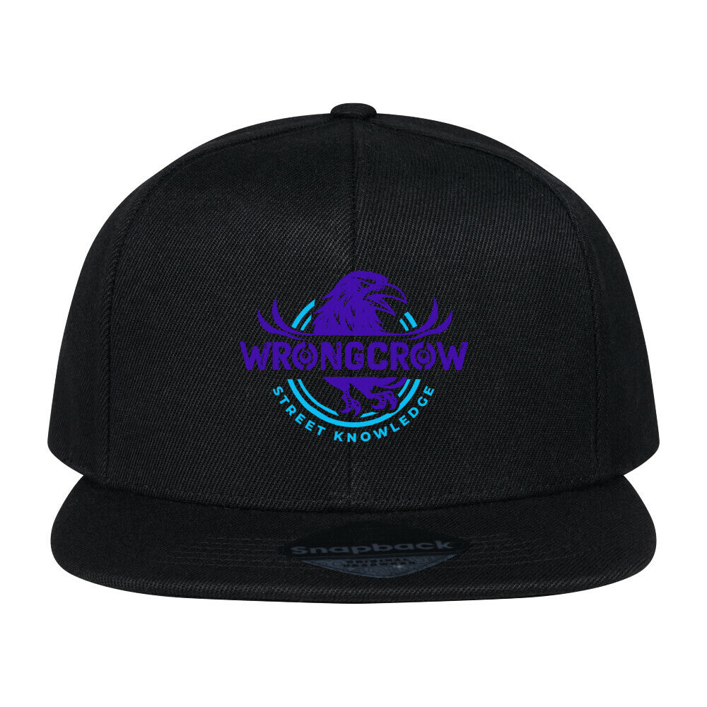 Vervollständige dein Setup mit dem WRONGCROW "Crow Logo" Snapback Cap. Das Zentrum dieses Designs bildet das detaillierte Raben-Emblem in leuchtendem Lila, eingefasst in das cyanfarbene „Street Knowledge“ Siegel. Dieses Cap vereint düstere Ästhetik mit urbanem Lifestyle und ist ein klares Bekenntnis zur WRONGCROW-Identity.